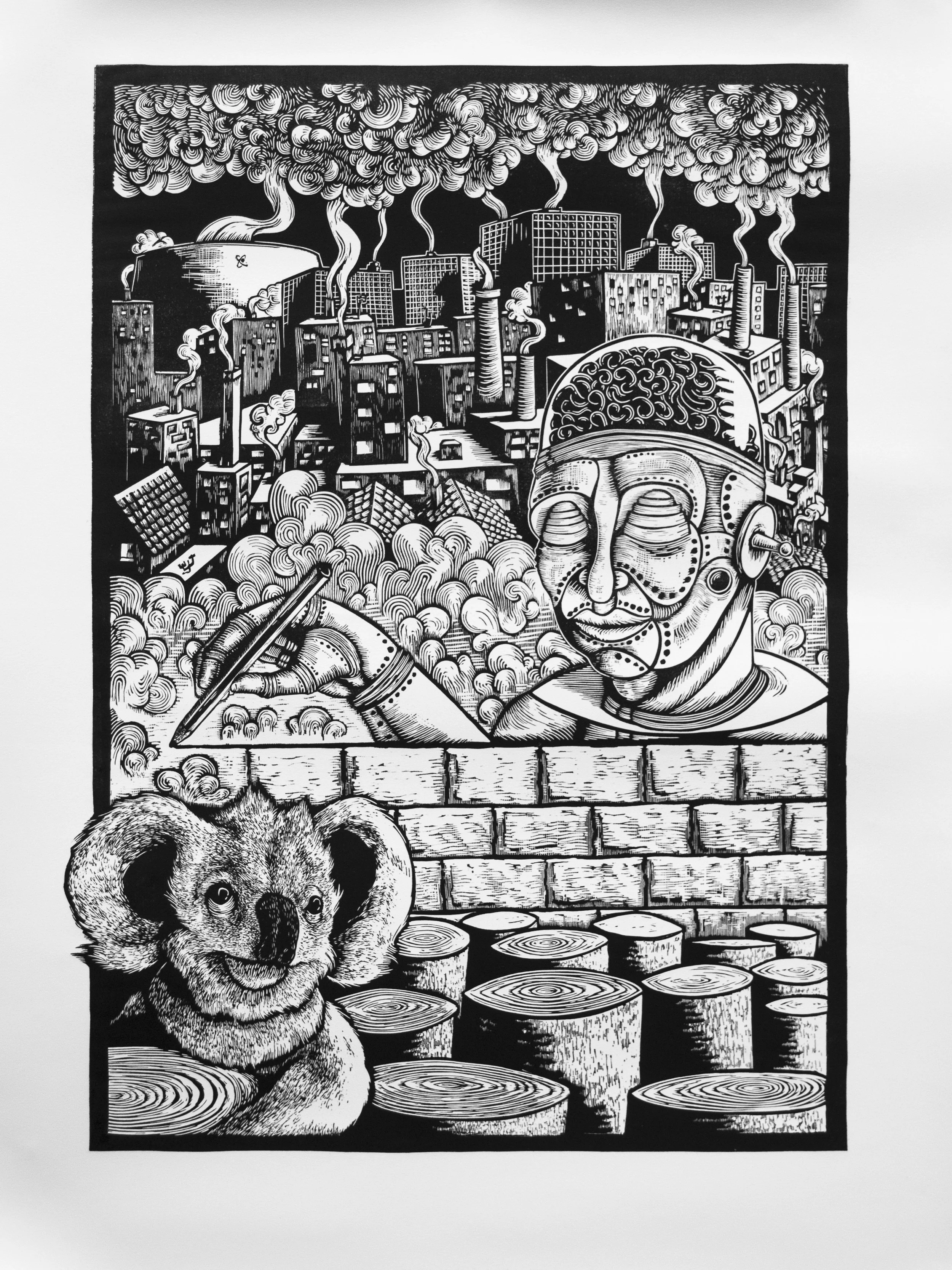 BottimindtricksMilan, Italywebsite | EMAIL | INSTAGRAM What Future Awaits Us?, Linocut, 63" x 39", 2020